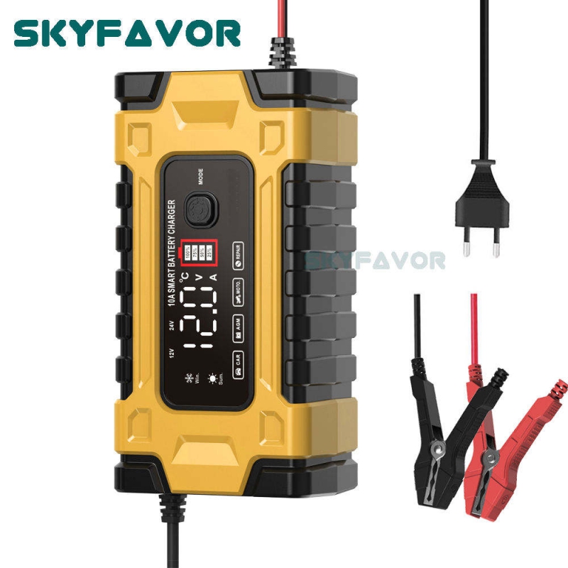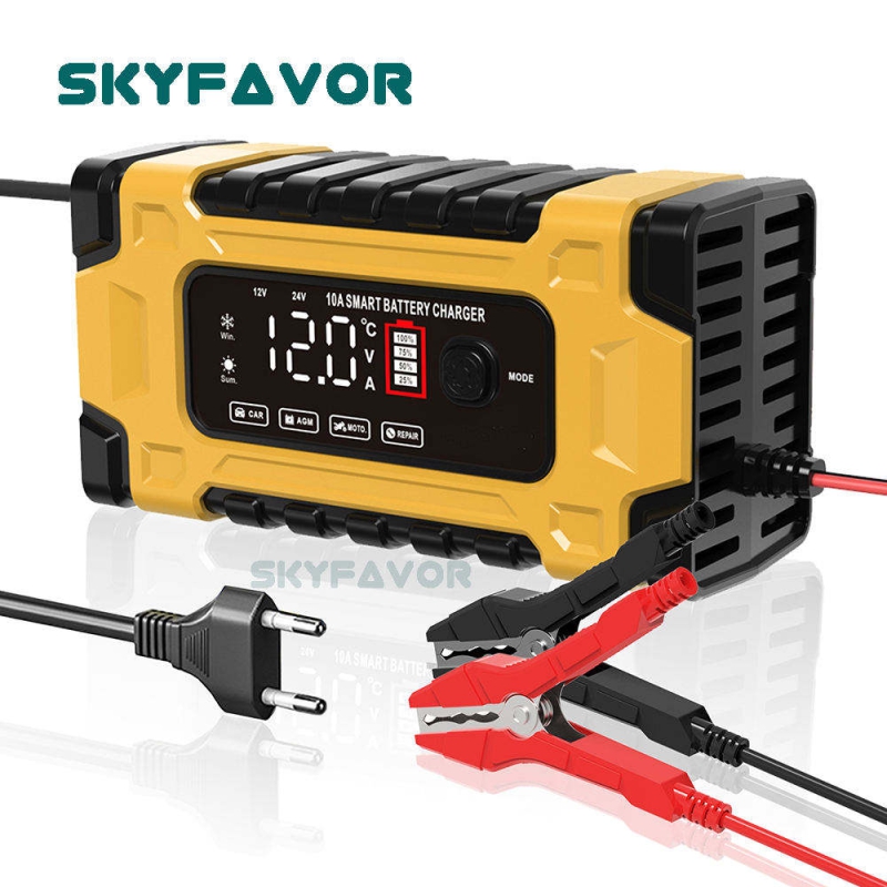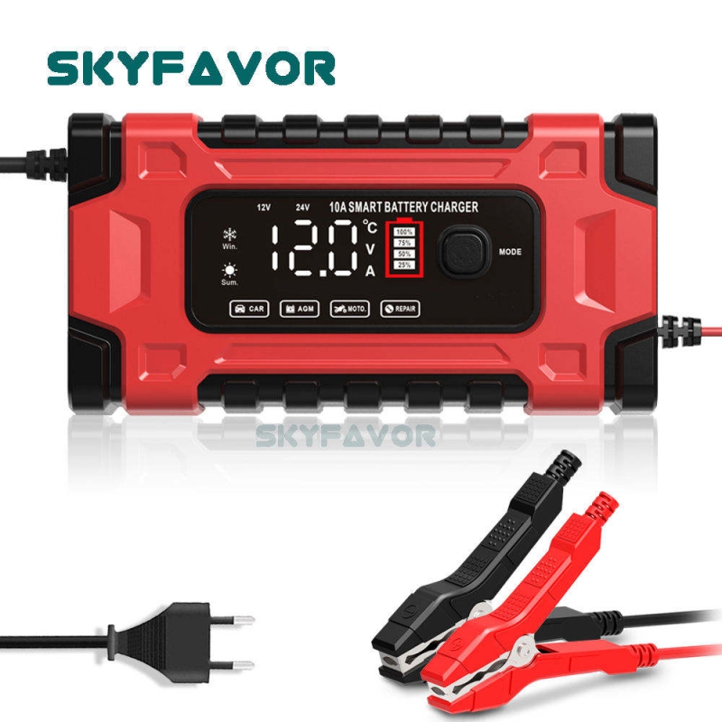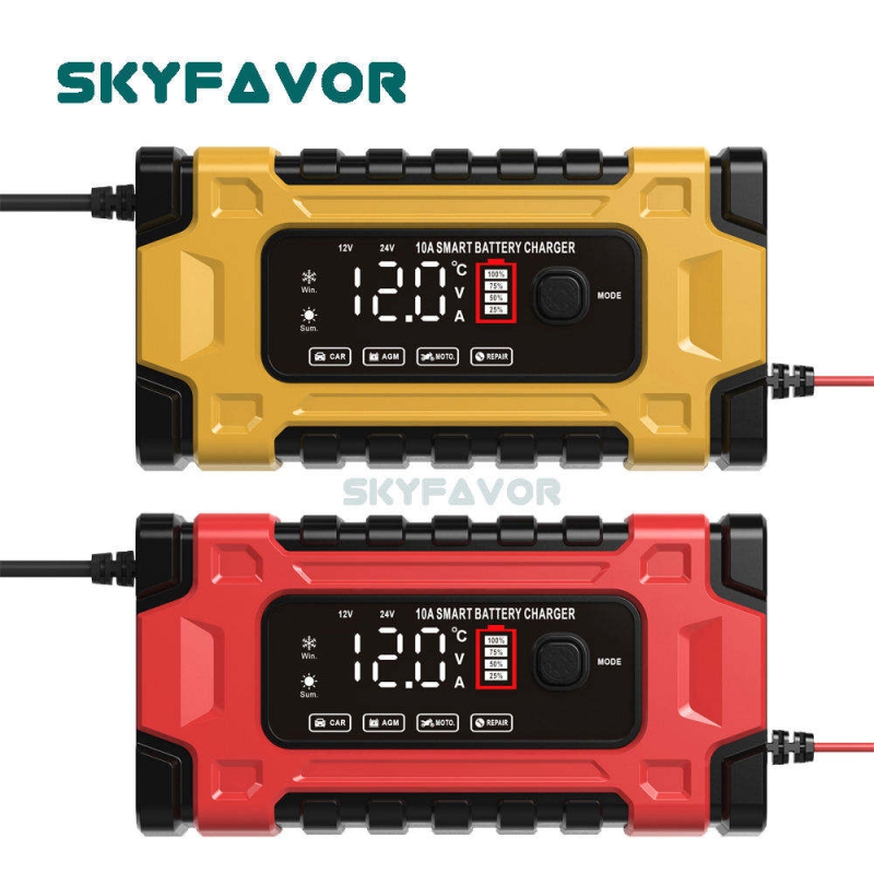 Professional 12V 24V Car Battery Charger 12V 24V 5A-10A Pulse Repair & OTP Protection for Gel/AGM Deep Cycle Car Battery Charger