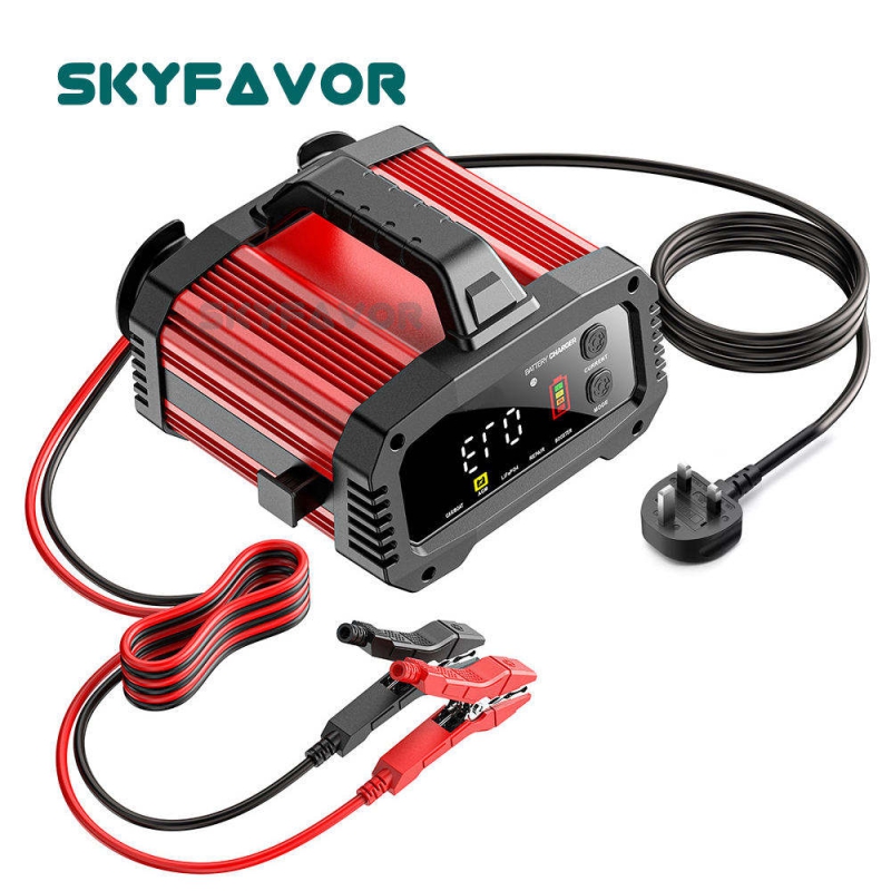 (Car Battery Charger)Latest Smart 12V 24V Car Battery Charger Automatic Adjustable Car Charger Universal Charger for Lead-Acid LiFePO4 Batteries