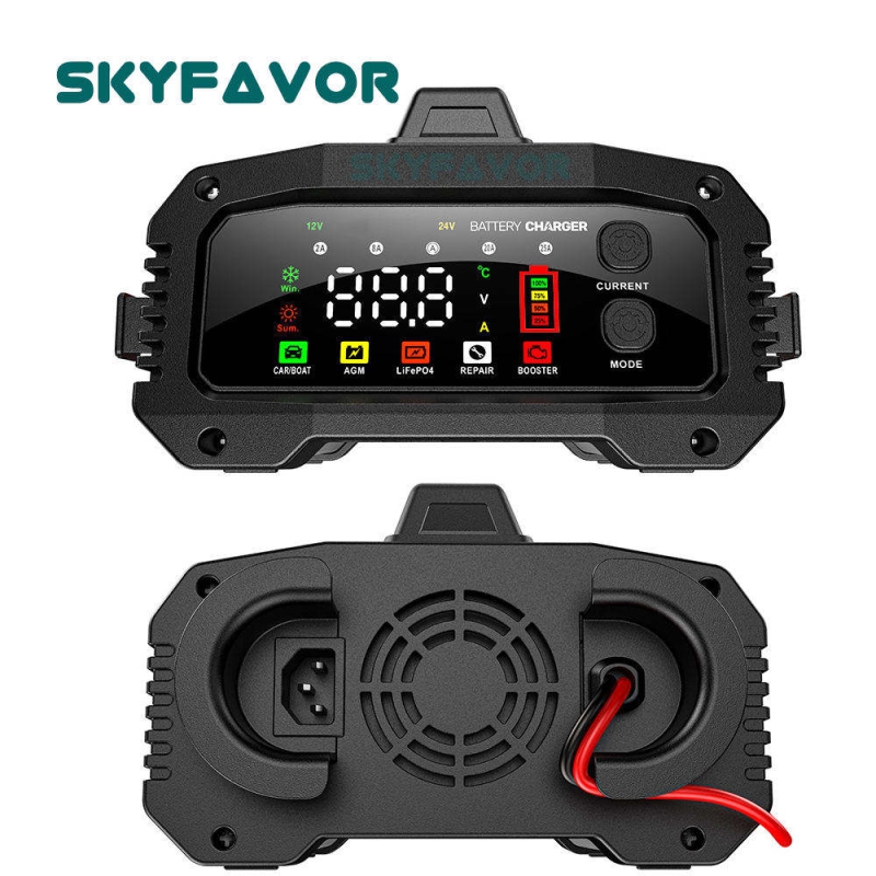 Latest Smart 12V 24V Car Battery Charger Automatic Adjustable Car Charger Universal Charger for Lead-Acid LiFePO4 Batteries