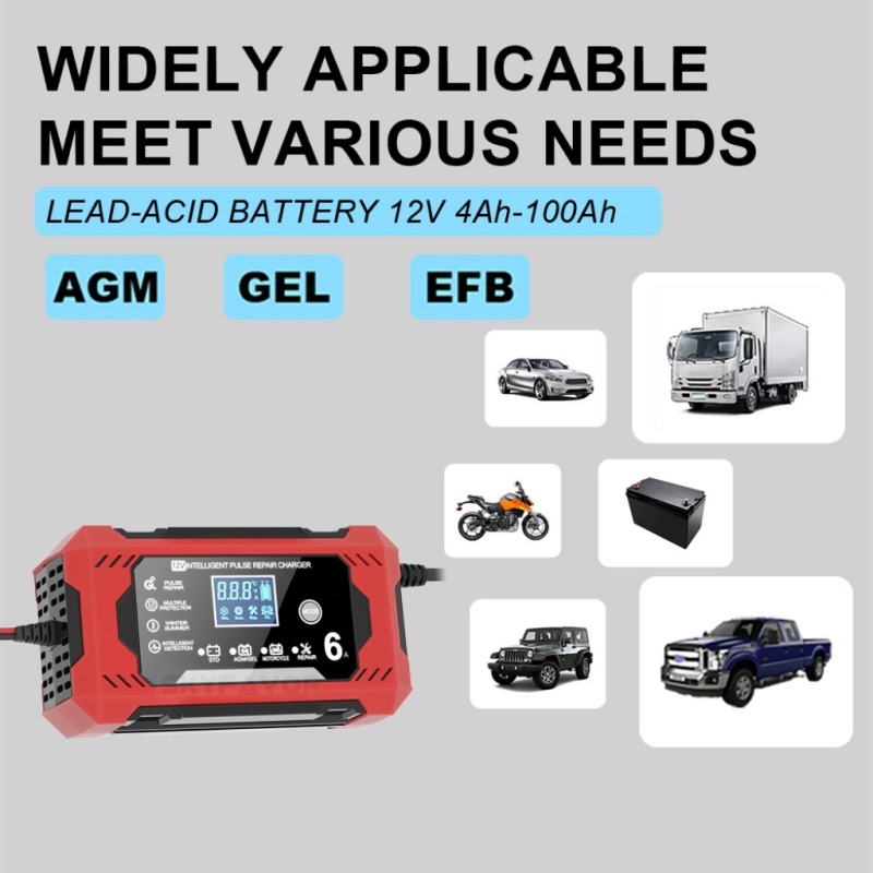 (12V battery charger)Trending Motorcycle Car Battery Charger 12V 6A Smart Automatic Maintenance-free Deep Cycle 12V 6 Amp Lead Acid Battery Charger
