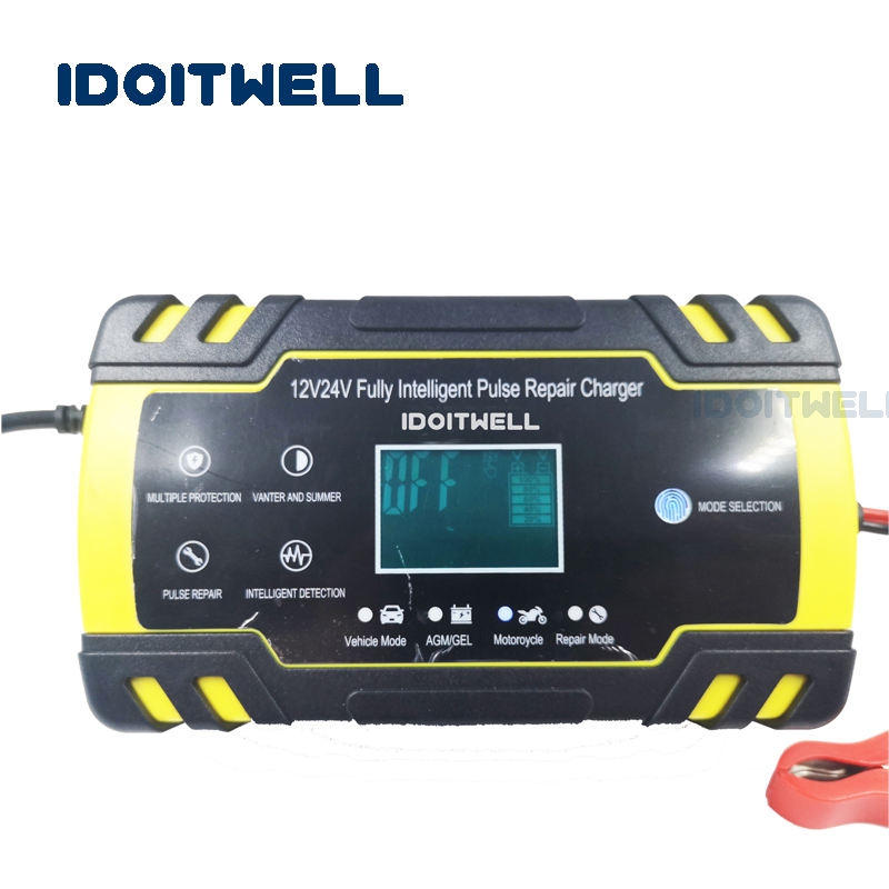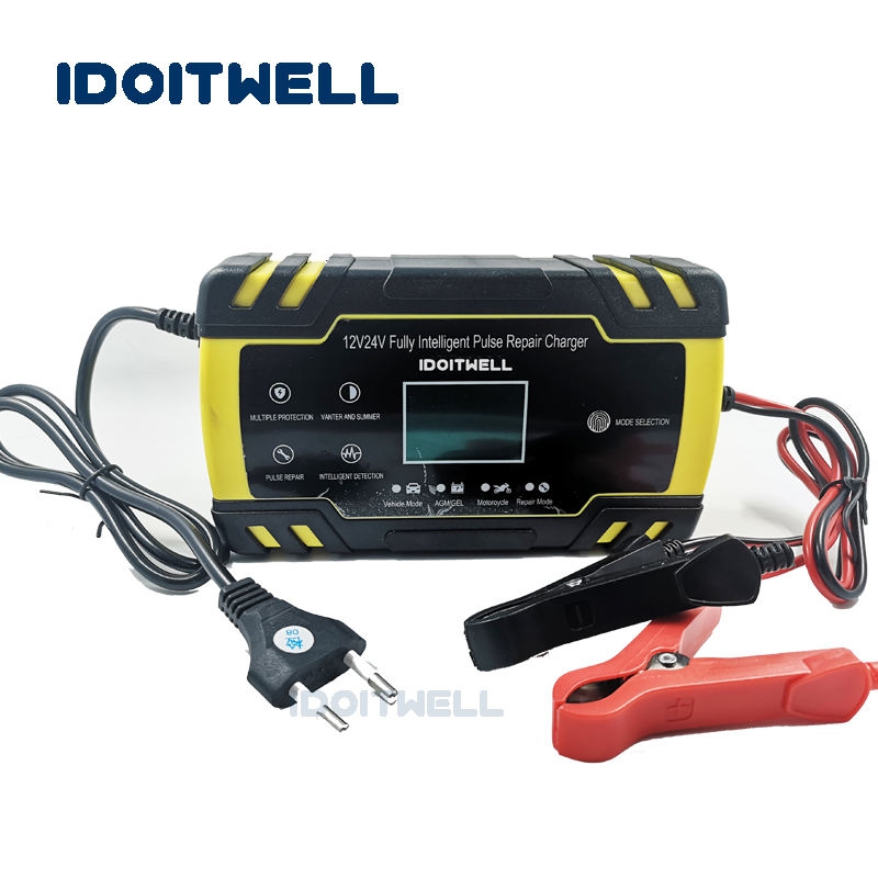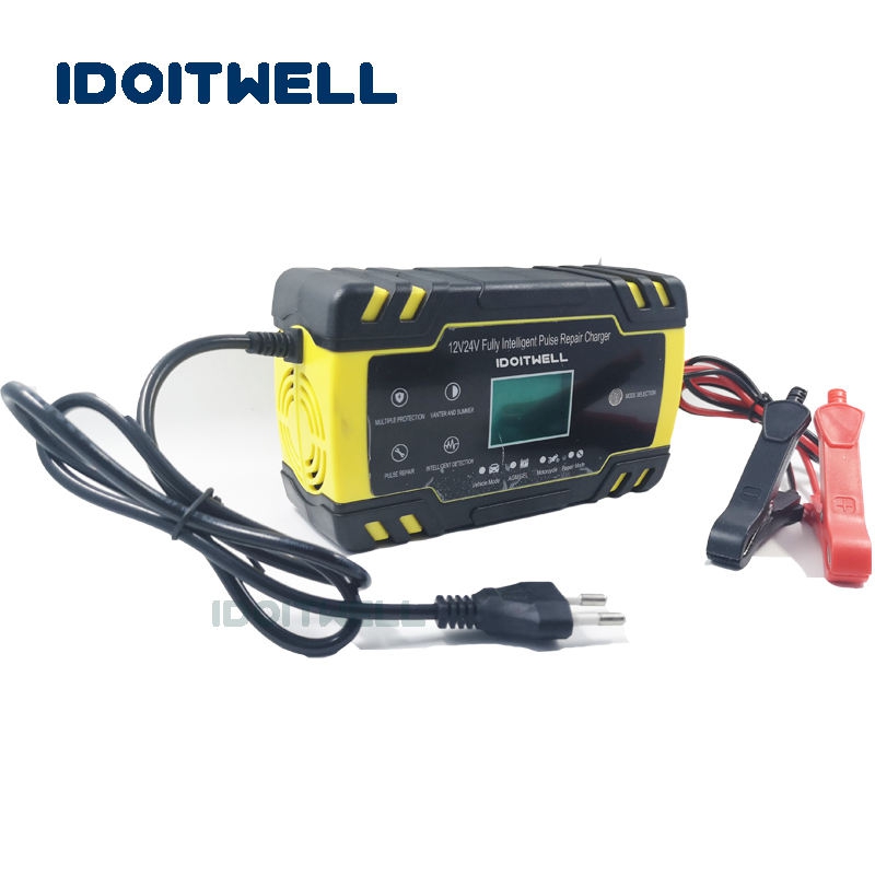 (12V 24V battery charger)12v 24v Automatic Car Battery Charger AGM GEL WET fast charger 12V 8A 24V 4A Intelligent Pulse Repair lead acid battery charger