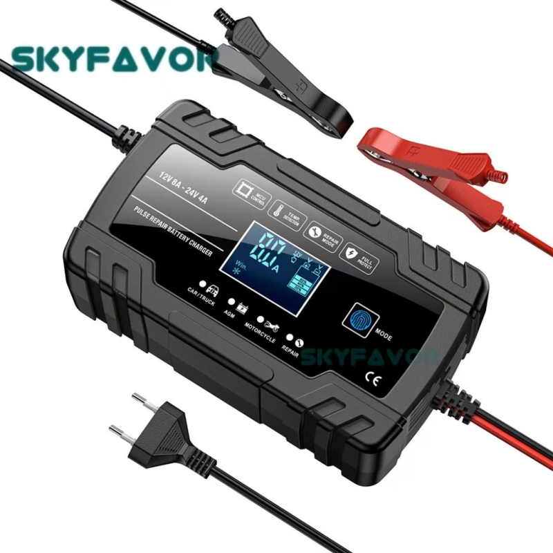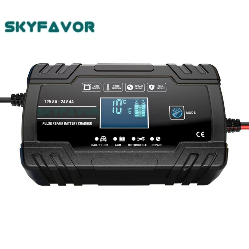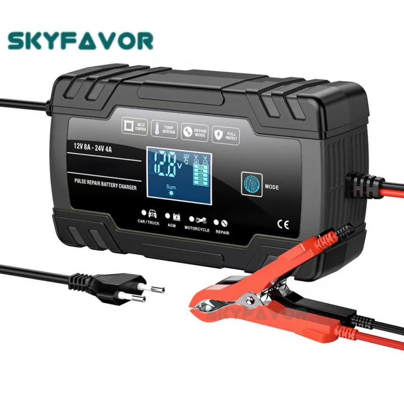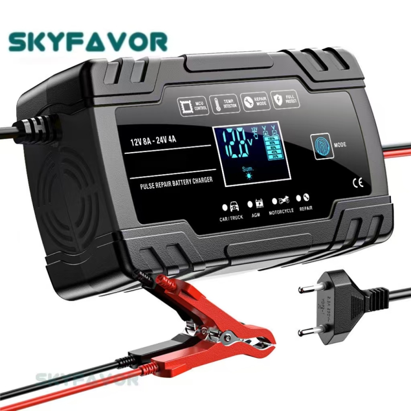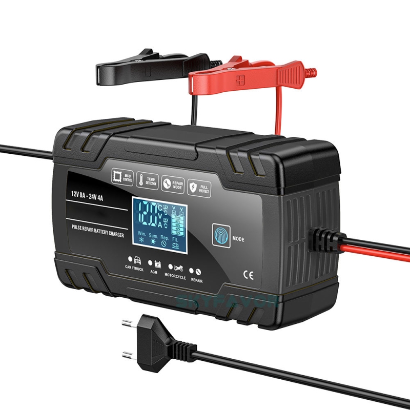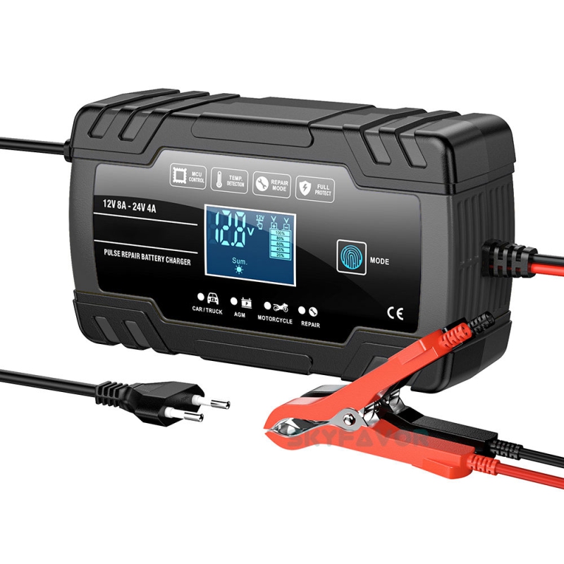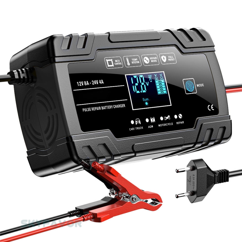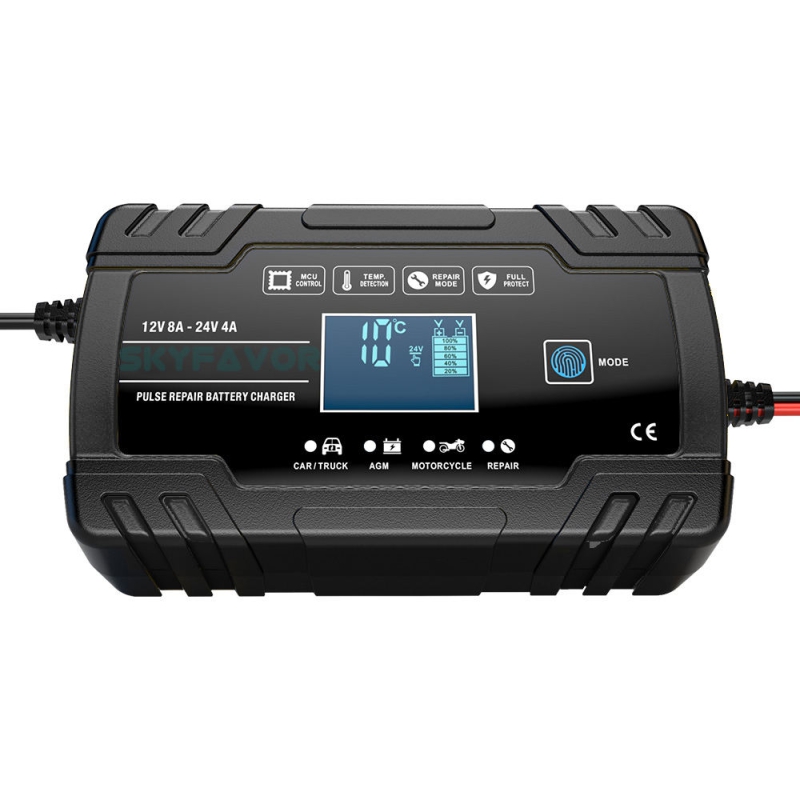 Universal Truck Car Battery Charger 12V 24V 8A Automatic Maintenance-free Gel Agm Dry Wet Deepcycle Pulse Repair Battery Charger